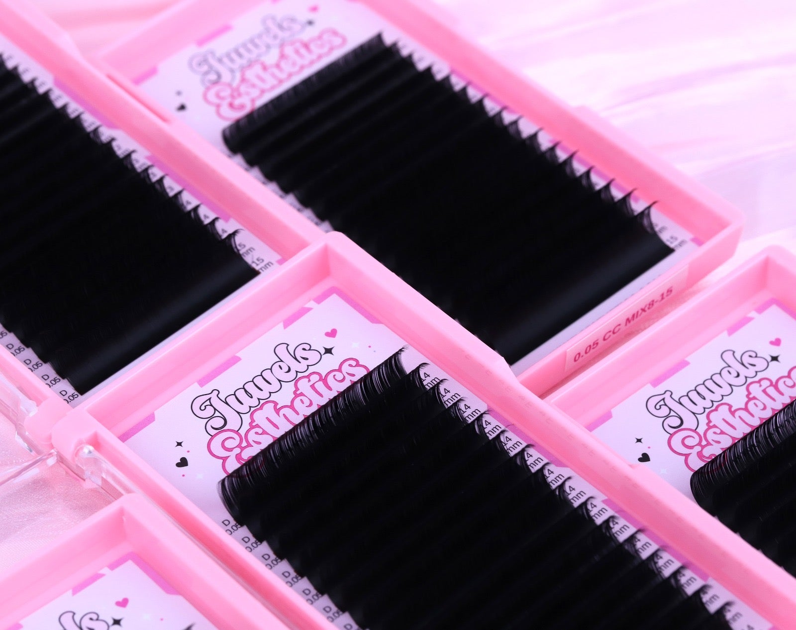 sensitive-free, pink clear-drying adhesive with a .5 second dry time. It’s long-lasting, wide humidity ranges, and free from carbon black, minimizing allergy risks.