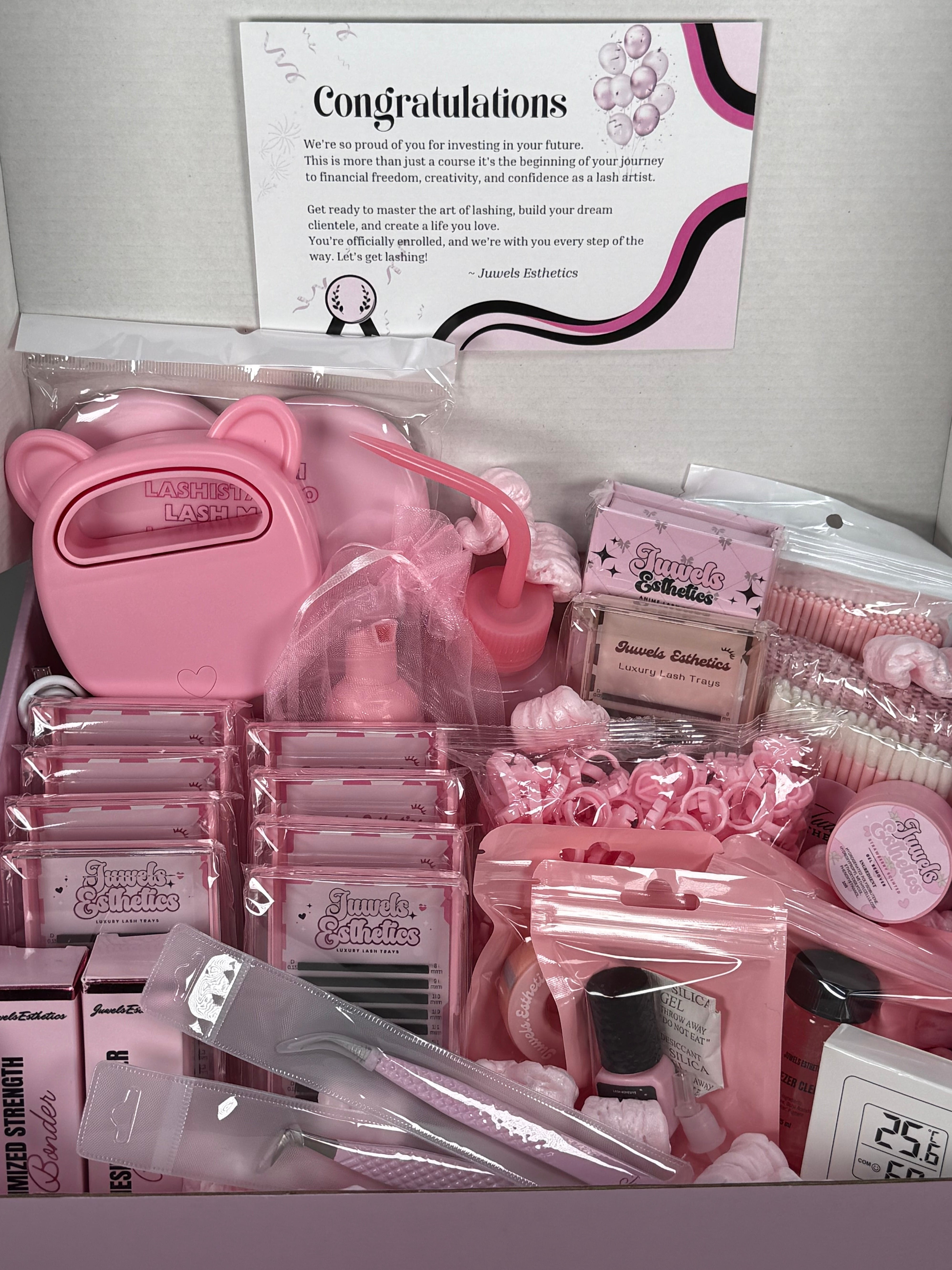 It comes with a fully loaded lash kit so you’re not running around guessing what you need. You get everything you need to start practicing right away, plus real, beginner friendly training you can always come back to and any updates that are made!